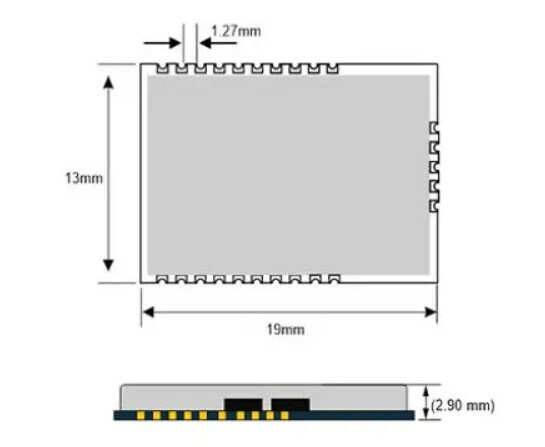 13mm x 19mm stamp package for easy assembly and low-cost pcb design. For more information you can consult the datasheet of the LLCC68 module on the Semtech website.